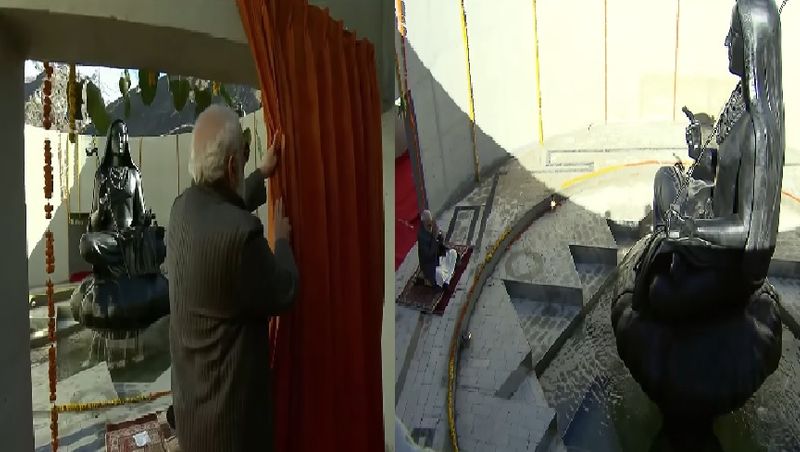 பின்னர் சிலை முன்பு அமர்ந்து தியானம் செய்த பிரதமர், அங்கு நடைபெற்ற நிகழ்ச்சியில் கலந்துகொண்டு 130 கோடி ரூபாய் மதிப்பிலான கட்டுமானப்பணிகள் மற்றும் நலத்திட்டங்களை தொடங்கிவைத்தார். குறிப்பாக யாத்திரிகர்கள் மற்றும் சுற்றுலா பயணிகளுக்கான முதலுதவி மையம், தங்கும் விடுதிகள், காவல் நிலையம், கட்டுப்பாட்டு அறை, வெள்ளம் மற்றும் இயற்கை பேரிடர்கள் ஏற்பட்டால் தங்கும் பாதுகாப்பு மையங்கள் ஆகியவற்றை திறந்து வைத்து உரையாற்றினார். அப்போது பேசிய அவர், இந்தியாவின் கலாச்சாரபெருமையை உலகம் வியந்து பார்ப்பதாகவும் புத்தகயா உள்ளிட்ட ஆண்மிக தலங்கள் வெளிநாட்டு சுற்றுலா பயணிகளை வெகுவாக ஈர்ப்பதாகவும் தெரிவித்தார். சமூதாய நலனுக்காக ஆதி சங்கரர் புதிய குறிக்கோளுடன் செயல்பட்டதாக கூறிய பிரதமர் மோடி, சமஸ்கிருதத்தில் உள்ள வேதங்களை வரும் தலைமுறையினருக்கு கொண்டு செல்ல வேண்டும் என தெரிவித்தார். இந்த சிலை கேதார்நாத் கோயில் அருகே 12 அடி உயரமும் 35 டன் எடையும் உடையது. இந்த சிலையை கர்நாடகாவின் மைசூருவை சேர்ந்த சிற்பி யோகிராஜ் செதுக்கி உள்ளார். இந்த சிலை உருவாக்கத்திற்காக 120 டன் கல் கொண்டுவரப்பட்டு, 2020 செப்டம்பரில் சிலை செதுக்கும் பணி துவங்கியது.