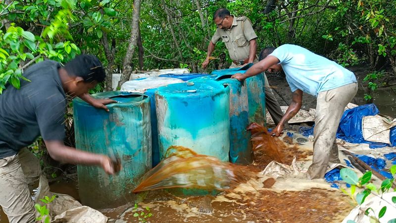 புதுச்சேரி மாநிலம் ஏனாம் கடலோரப் பகுதிகளில் கள்ள சாராயம் காய்ச்சி விற்பனை செய்யப்படுவதாக ஏனாம் காவல் துறையினருக்கு ரகசிய தகவல் கிடைத்தது. அதன்பேரில் புதுச்சேரி பிராந்தியமான ஏனாம் கடலோர காவல் நிலைய காவல் கண்காணிப்பாளர் சிவகணேஷ் உத்தரவின் பேரில் ஆந்திரப் பிரதேசத்தின் கடலோரப் பகுதிகள் மற்றும் மக்கள் வசிக்காத தீவுகள் மற்றும் ஆந்திரப் பிரதேசத்தின் தீவுகளுக்கு சென்று கலால் துறையினர் அதிரடியாக சோதனை நடத்தினர். அப்போது ஏனாம், சாவித்திரி நகரின் தீவு எண் 2க்கு மிக அருகில் மற்றும் எதிரே உள்ள ஆந்திராவின் ஐ போலவரம் எல்லையில் உள்ள தீவு, சதுப்புநில காடுகளில் சட்டவிரோதமாக சாராயம் காய்ச்சியது கண்டுபிடிக்கப்பட்டது.