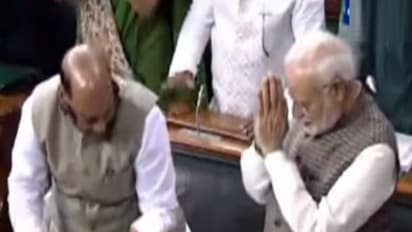 மக்களவையில் குடியரசுத்தலைவரின் உரைக்கு நன்றி தெரிவிக்கும் தீர்மானத்தில் பிரதமர் மோடி உரையாற்றினார். அப்போது உள்துறை அமைச்சர் ராஜ்நாத்சிங் எழுந்து நின்று மேஜையை வேகமாக தட்டினார்.
