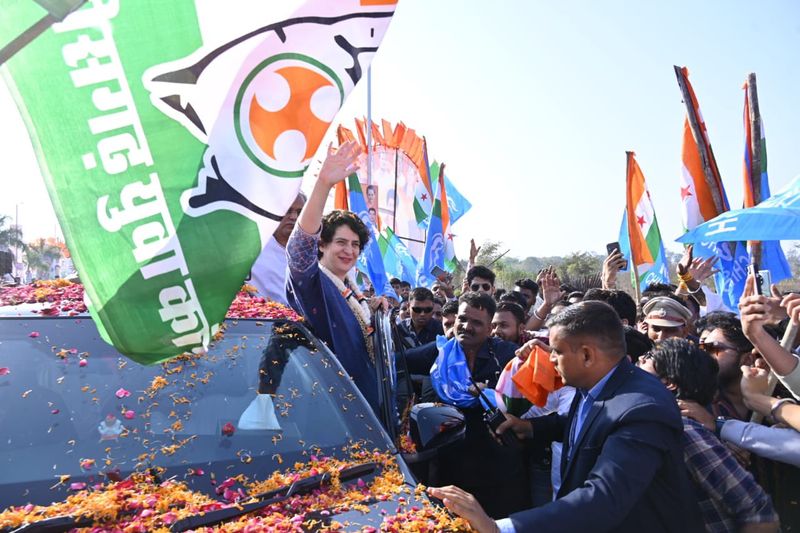 பிரியங்கா சாலையின் இருபுறங்களிலும் திரண்டிருந்த தொண்டர்களை நோக்கி புன்னகையுடன் கை அசைத்துக்கொண்டே காரில் ஊர்வலமாகச் சென்றார். இருபுறமும் நின்றிருந்த தொண்டர்களும் அவர் மீது ரோஜா இதழ்களைத் தூவி வரவேற்பு தெரிவித்தனர். பிரியங்கா காந்திக்கு இவ்வாறு ரோஜா மலர்களைத் தூவி அமோக வரவேற்பு அளித்த காட்சி சமூக வலைத்தளங்களில் வைரலாகப் பரவி வருகிறது.
