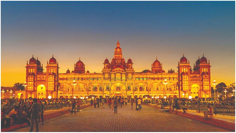 5. மைசூர் அரண்மனை: 19 மற்றும் 20 ஆம் நூற்றாண்டைச் சேர்ந்த, உலகப் புகழ்பெற்ற அம்பா விலாஸ் அரண்மனை, உடையார் வம்சத்தினர் கற்பனை செய்து, 'அரச பாரம்பரிய அதிசயமாக' அறிவிக்கப்பட்டது.