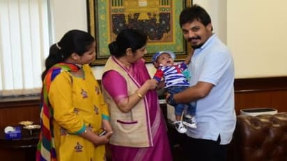 இதயநோய் அறுவைசிகிச்சை செய்துகொண்ட பாகிஸ்தான் குழந்தை ரோஹன் மற்றும் அவரது பெற்றோர் இந்திய வெளியுறவுத் துறை அமைச்சர் சுஷ்மா சுவராஜைச் சந்தித்து வாழ்த்துப் பெற்றனர்.