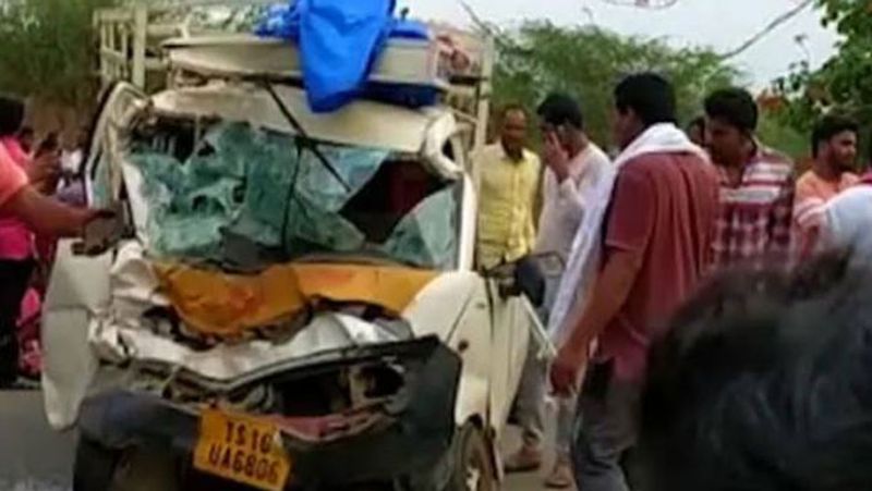 தெலங்கானாவில் வேன் - லாரி நேருக்கு நேர் மோதி விபத்துக்குள்ளானது. இந்த விபத்தில் 9 பேர் சம்பவ இடத்திலேயே பரிதாபமாக உயிரிழந்தனர்.
