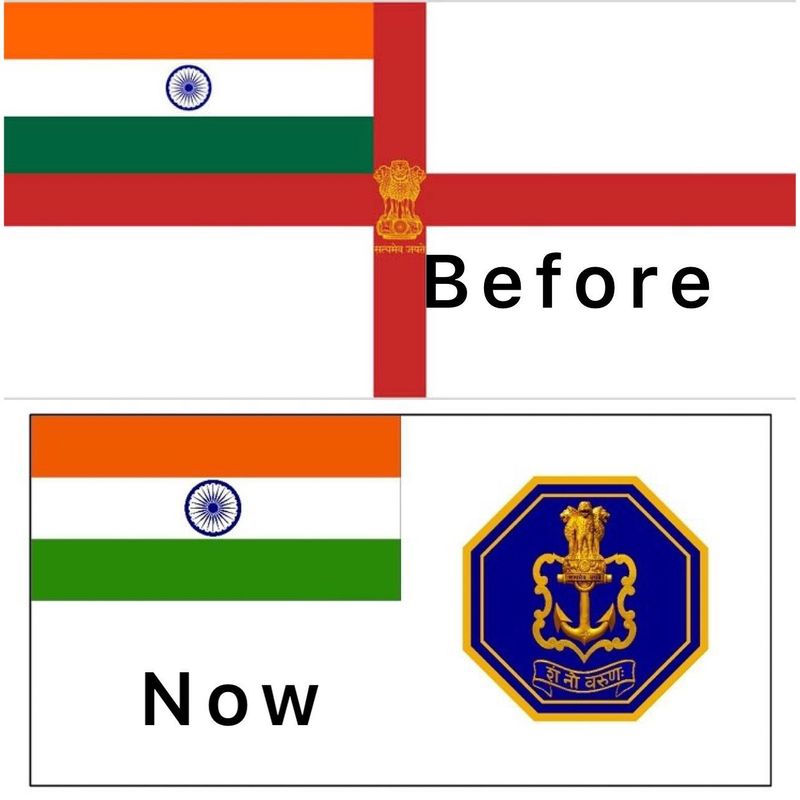 கடந்த 1950ம் ஆண்டுக்குப்பின் கடற்படைக்கு 4வது முறையாக கொடி மாற்றப்பட்டுள்ளது. 1950ம் ஆண்டு ஜனவரி 26ம்தேதி கடற்படைக்கு முதல்முறையாக கொடி மாற்றப்பட்டது. அதற்கு முன் புனித ஜார்க் கிராஸ் மட்டுமே சிவப்பு நிறத்தில் இருந்தது. அதற்கு மேல் தேசியக் கொடி பொறிக்கப்பட்டது.