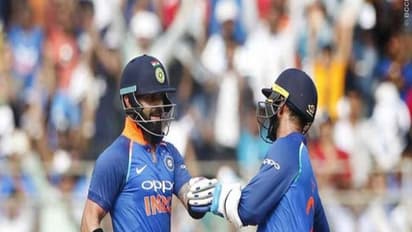 4-வது விக்கெட்டுக்கு விராட் கோலியுடன் தினேஷ் கார்த்திக் ஜோடி சேர்ந்தார். இந்த ஜோடி நிதானமாக விளையாடியது. மிகவும் பொறுமையாக விளையாடிய கேப்டன் விராட் கோலி 25வது ஓவரில் அரைசதம் அடித்தார்.