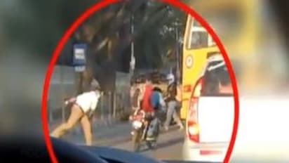பெங்களூருவில், இருசக்கர வாகன ஓட்டி மமீது போக்குவரத்து போலீசார் தன் செருப்பை கழட்டி வீசியது பெரும் பரபரப்பை ஏற்படுத்தி உள்ளது.