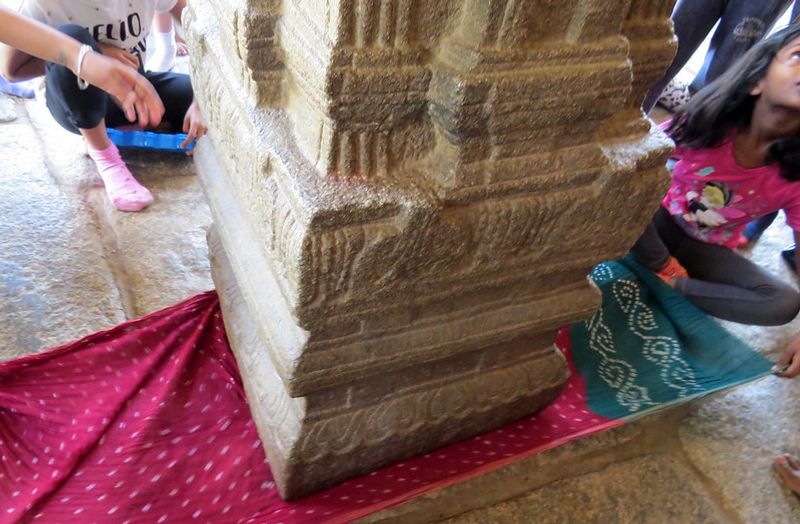 தூணுக்கும் தரைக்கும் இடையே உள்ள இடைவெளியை சோதிக்க, ஒரு துணியையும் வைக்கலாம். நீங்கள் கோவில் வளாகத்திற்குள் நுழையும் போது, கலாச்சார மற்றும் பழங்கால பொறியியல் அதிசயங்களை பார்க்கலாம். கோயில் சுவர்களில் தூண்கள் உட்பட பல்வேறு கடவுள் மற்றும் தெய்வங்களின் தெய்வங்கள் செதுக்கப்பட்டிருக்கும். பழங்கால இந்திய கலாச்சாரம் மற்றும் மரபுகளை வியக்க வைக்கும் வகையில் மேற்கூரை ஓவியங்கள் இடம்பெற்றுள்ளது.