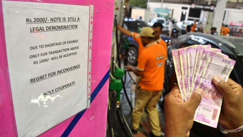 2,000 ரூபாய் நோட்டுகளை வங்கிக் கணக்கில் டெபாசிட் செய்யலாம் அல்லது வேறு பணத்திற்கு மாற்றலாம் என்று அரசாங்கம் ஏற்பாடு செய்துள்ள நிலையில், மக்கள் கையில் 2,000 ரூபாய் நோட்டுகளுடன் பெட்ரோல் பம்புகளுக்கு விரைந்தனர். பெட்ரோல் பம்ப் பணியாளர் ஒருவர் கூறுகையில், தினமும் 10 முதல் 12 பேர் 2000 ரூபாய் நோட்டுகளுடன் வருகிறார்கள். வாடிக்கையாளர்கள் ரூ.100 - 200 மதிப்பிலான எரிபொருளை வாங்கி அதிக கரன்சி நோட்டுடன் பணம் செலுத்துவதாக கூறினார்.