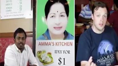 இது தமிழகம் மட்டுமின்றி அம்மா உணவகத்தின் பெருமை அமெரிக்கா வரை சென்றுள்ளது என்றால் உங்களால் நம்பமுடிகிறதா? ஆம்... நம்பித்தான் ஆக வேண்டும்.தினேஷ் என்ற இளைஞர் ஹோட்டல் மேனேஜ்மெண்ட் படிப்பை முடித்துவிட்டு சில ஆண்டுகள் நட்சத்திர ஹோட்டலில் பணிபுரிந்துள்ளார். இவர் சிறுவயது முதலே அம்மா மீது கொண்ட அதீத பாசம் கொண்டவர் மற்றும் மிக சிறந்த தொண்டர் என்பதால், தற்போது அமெரிக்காவின் நியூஜெர்சியில் ஒரு டாலருக்கு இரண்டு இட்லி, மூன்று விதமான சட்னி, சுடச்சுட சாம்பார் என கொடுத்து அனைவரையும் அசத்துகிறார்.