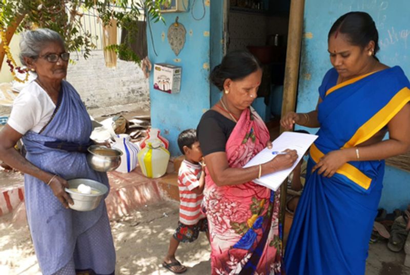 கொரோனா வைரஸ் பரவுவதைத் தடுக்கும் நடவடிக்கையாக தமிழகம் முழுவதும் பள்ளி, கல்லூரிகள், மழலையா் பள்ளிகள், அங்கன்வாடி மையங்கள் உள்ளிட்டவை மூடப்பட்டுள்ளன. இந்நிலையில், அங்கன்வாடி மையங்களுக்கு வரும் குழந்தைகளுக்கு வழங்கப்படும் உணவுப் பொருள்களை அவரவா் வீடுகளில் நேரடியாக வழங்க உத்தரவிடப்பட்டிருந்தது. இதன்படி, அரிசி, பருப்பு, முட்டை, சத்து மாவு ஆகியவற்றை அங்கன்வாடி பணியாளா்கள் குழந்தைகளின் வீடுகளுக்குச் சென்று வழங்கி வருகிறார்கள்.