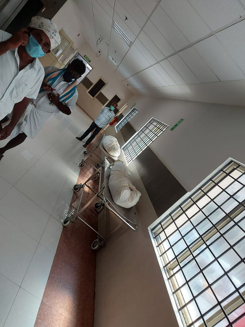 மதுரை அரசு ராஜாஜி மருத்துவமனையில், கொரோனாவால் உயிரிழந்தவர்களின் சடலங்கள், சிகிச்சை பெறுபவர்களின் அறையில் வைக்கப்பட்டதாக புகார் எழுந்துள்ளது.