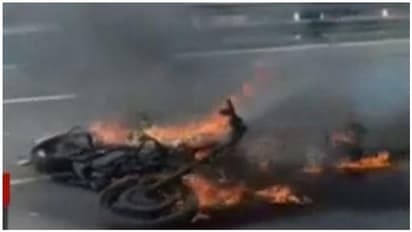 இரு சக்கர வாகனத்தில், இரண்டு பேர் பயணம் செய்து உள்ளனர். அப்போது வாகனத்தில் தீப்பிடித்து உள்ளது. இதனை கண்ட பின்னால் அமர்ந்து இருந்த நபர் எகிறி கீழே குதிக்க, வாகனத்தை ஓட்டி சென்ற நபர் மட்டும் தீயில் கருகி உயிர் இழந்தார். வாகனமும் கருகியது. இந்த சம்பவத்தை நேரில் பார்த்த பின்னால் அமர்ந்து இருந்த நபர் அதிர்ச்சியில் அங்கேயே மயக்கம் அடைந்துள்ளார். இது குறித்து, தகவல் அறிந்து சம்பவ இடத்திற்கு விரைந்து வந்த தீயணைப்பு துறையினர் தீயை அணைத்தனர்.