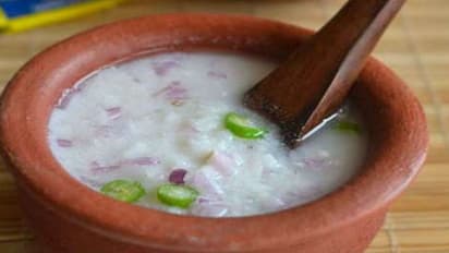 இரவில் மீதமிருக்கும் சாதத்தில் தண்ணீர் இட்டு வையுங்கள் . காலையில் எழுந்தவுடன் அதனுடன் தயிர் சேற்று நன்கு கைகளால் பிசைந்து , அதில் வேண்டுமென்றால் சிறிது வெங்காயம் சேர்த்துக் கொள்ளுங்கள்.