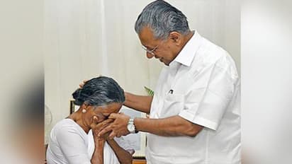 கூப்பிய கரங்களுடன் கண்ணீர் சிந்தியபடி தன்னை நோக்கி பிரபாவதி வருவதை பார்த்ததும் பினராய் விஜயன் தனது இருக்கையில் இருந்து எழுந்து வந்து பிரபாவதியின் கைகளை பிடித்தபடி அவருக்கு ஆறுதல் கூறினார்.