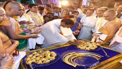 பரபரப்புக்கு பேர் போன தெலுங்கான முதலமைச்சர் சந்திர சேகர் ராவ், அரசு பணத்தில் இருந்து 5 கோடி ரூபாய் மதிப்பிலான , தங்க வைர நகைகளை திருப்பதி கோவிலுக்கு அளித்துள்ளார்.