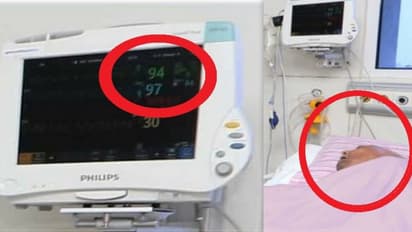 இந்த புகைப்படத்தில் நன்றாக பார்த்தால் கருணாநிதியின் உடல் நிலை குறித்த தற்போதைய நிலைமையை அறிந்துகொன்ள்ள முடிகிறது. சுவாச குழாய் இணைப்பு இன்றி இயல்பாக இருக்கிறார் கருணாநிதி. செய்ற்க்கை சுவாசம் இல்லாமலலேயே, நார்மலாக சுவாசிப்பது தெரிகிறது. ரத்த அழுத்தம் 94-97 உள்ளதாக புகைபடம் காட்டுகிறது.