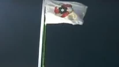 கொடி வெள்ளை நிறத்தில் 6 கரங்கள் ஒன்றோடு ஒன்று இருக்க பிடித்துள்ள நிலையில் உள்ளது.