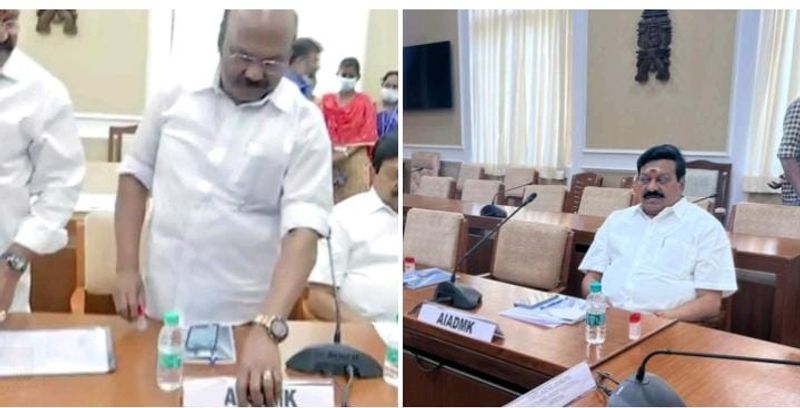 இந்த கூட்டத்தில் பங்கேற்க வந்த ஓ.பன்னீர்செல்வம் தரப்பைச் சேர்ந்த கோவை செல்வராஜ் அதிமுகக்கு ஒதுக்கப்பட்ட இடத்தில் அமர்ந்துகொண்டார். சில நிமிடங்கள் கழித்து எடப்பாடி பழனிசாமி தரப்பில் முன்னாள் அமைச்சர் ஜெயக்குமார் மற்றும் முன்னாள் துணை சபாநாயகர் பொள்ளாச்சி ஜெயராமன் வந்தனர். அப்போது அதிமுகவுக்கு ஒதுக்கப்பட்ட இடத்தில் கோவை செல்வராஜ் அமர்ந்திருப்பதை கவனித்த ஜெயக்குமார், அதிமுக பெயர் பலகை தங்கள் பக்கம் நகர்த்தி கொண்டார். இதனால் அங்கு சிறிது நேரம் சலசலப்பு ஏற்பட்டது.