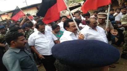திருவாரூரில் திமுக செயல் தலைவர் மு.க.ஸ்டாலின் தலைமையில் அனைத்து கட்சியினர் பேரணியாகச் சென்று சாலை மறியலில் ஈடுபட்டுள்ளனர்.
