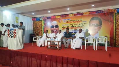 அந்த வகையில், இன்று திருவாரூரின் முக்கிய பகுதியில், சில ஆயிரம் பேரைக் கூட்டி கருணாநிதிக்கு அஞ்சலி கூட்டத்தை ஏற்பாடு செய்து விட்டார். இதில், அவரது மகன் துரைதயாநிதி, மதுரை முன்னாள் துணை வேந்தர் மன்னன் உள்ளிட்ட பலர் கலந்து கொண்டனர். இந்த கூட்டத்தில் பேசிய அழகிரி, தன்னோடு 400 பேர் அல்ல, 40 வந்தாலும் ஒரு கை பார்க்காமல் விட மாட்டேன் என பேசியுள்ளார்.