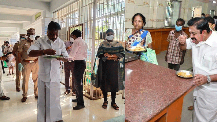 முதல்வர் எடப்பாடி பழனிச்சாமி நேற்று சென்னை அம்மா உணவகத்தில் ஆய்வு நடத்தி இருந்த நிலையில், இன்று தேனி பழைய பேருந்து நிலையத்தில் செயல்படும் அம்மா உணவகத்தில் ஓபிஎஸ் ஆய்வு செய்த பின் இட்லி, பொங்கல் சாப்பிட்டு உணவின் தரத்தை பரிசோதித்தார்.