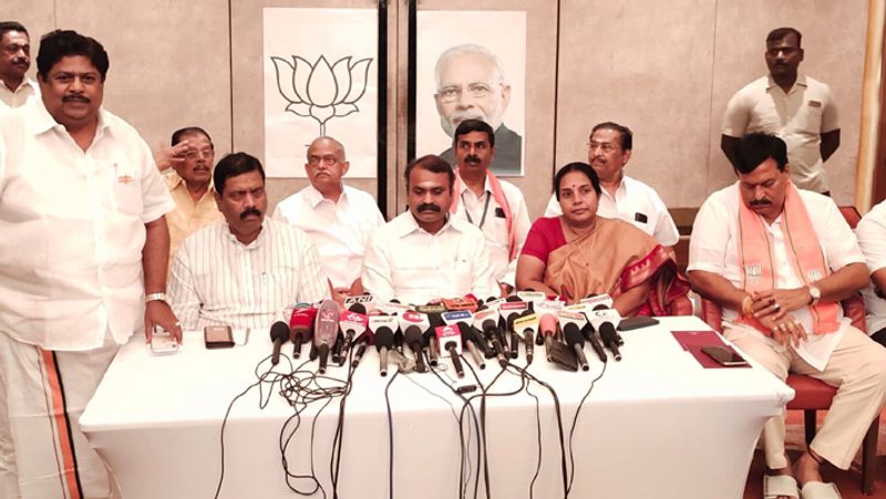 ஆனால் யாரும் பாஜகவில் இணைய வரவே இல்லை. கடைசியில் காத்திருந்த விட்டு பத்திரிக்கையாளர்கள் திரும்ப சென்றனர். பிரதமர் மோடி தமிழகம் வரும் நிலையில், இந்த இணைப்பு விழா ஒத்திவைக்கப்பட்டுள்ளாதகவும், விரைவில் இணைப்பு நடைபெறும் என தெரிவிக்கப்பட்டது. அப்போது அதிமுக எம்எல்ஏ அம்மன் அர்ஜூனன் நட்சத்திட விடுதி அருகே தனது ஆதரவாளர்களுடன் நடந்து சென்றார். இதனால் அம்மன் அர்ஜூனன் பாஜகவில் இணைய வந்திருக்கலாம் என தகவல் வெளியாகியிருந்தது.