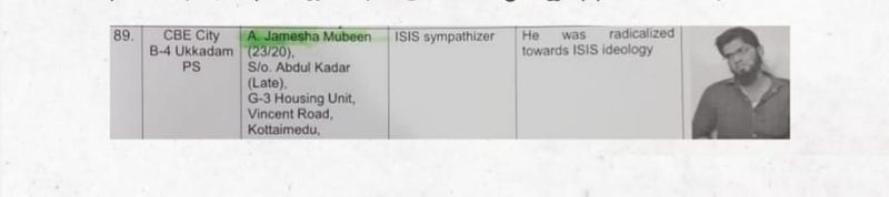 96 நபர்களுக்கு ISIS இயக்கத்துடன் தொடர்பு இருப்பதாகவும், மக்கள் கூடும் இடங்களில் இவர்கள் தனி நபராக திடீர் தாக்குதல் நடத்த வாய்ப்புள்ளதாகவும் ஒரு பட்டியலை கொடுத்துள்ளது. அந்த தனிப்பிரிவு அதில் ஜமேஷா முபீன் 89ஆம் இடத்தில் உள்ளார். இந்த வருடம் ஜூலை மாதம் 10ஆம் தேதி கொடுக்கப்பட்ட இந்த எச்சரிக்கைக்கு பின்னரும் ஜமேஷா முபீனை கண்காணிப்பு வளையத்துக்குள் கொண்டு வராமல் கோட்டை விட்டுள்ளது தமிழக காவல்துறையின் உளவுத்துறை.