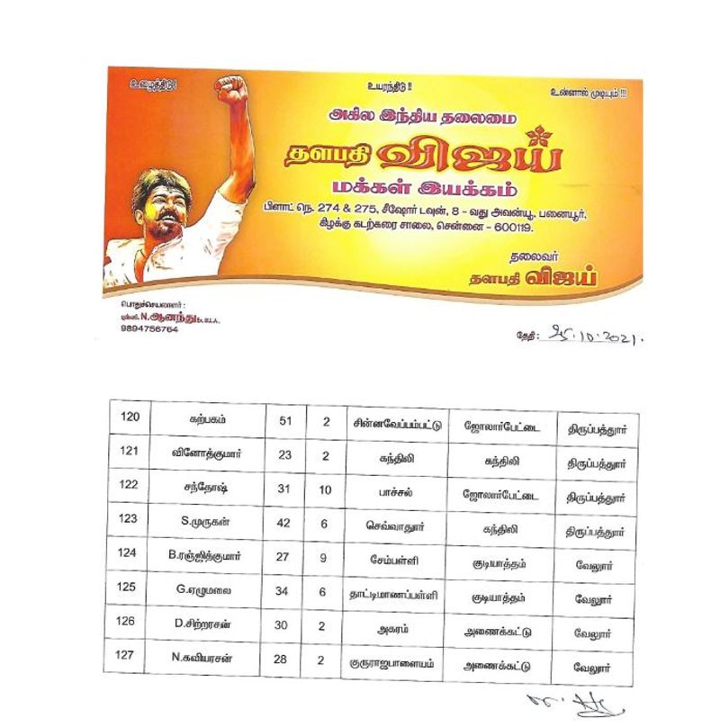 முன்பு கூறியபடி 110 பேர் வெற்றியாளர்கள் என்பதற்கு மாறாக அறிக்கையில் 129 பேர் வெற்றி பெற்றதாகப் புஸ்ஸி ஆனந்த் தெரிவித்துள்ளார். அதோடு வெற்றி பெற்ற 129 பேருடைய பெயர், வயது, வெற்றி பெற்ற பதவி, கிராமம், ஒன்றியம், மாவட்டம் என அனைத்து தகவல்களுடன் அந்தப் பட்டியல் வெளியிடப்பட்டுள்ளது. இதற்கிடையே வெற்றி பெற்றவர்களுடன் விஜய் எடுத்துக்கொண்ட புகைப்படம் இணையத்தில் வைரலாகிவருகிறது. வழக்கமாக வெற்றியாளர்களுடன் நடுநாயகமாக அமர்ந்து தலைவர்கள் புகைப்படம் எடுத்துக்கொள்வது வழக்கம். ஆனால், நடிகர் விஜய் வெற்றியாளர்களை முன்னிலைப்படுத்தி, ஓர் ஓரமாக உட்கார்ந்திருப்பது கனவத்தை ஏற்படுத்தியுள்ளது.