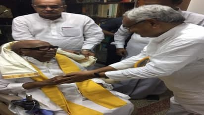 கருணாநிதியின் 94 ஆவது பிறந்த நாளையொட்டி பீகார் முதலமைச்சர் நிதீஷ்குமார் அவரை நேரில் சந்தித்து பொன்னாடை போர்த்தி வாழ்த்துத் தெரிவித்தார்.