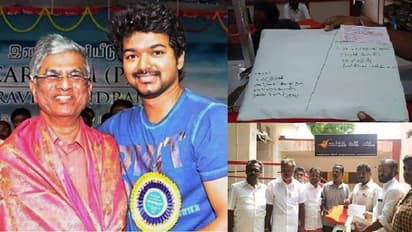 இந்நிலையில், விஜய்யின் தந்தை எஸ்.ஏ.சந்திரசேகர் மோடி மீண்டும் ஆட்சிக்கு வந்தால் அனைவரும் காவி வெட்டி கட்டிக்க கொண்டு அலைவதாக சொன்னதால் பிஜேபி பெரும்பான்மையது ஜெயித்ததால் விஜய்யின் தந்தைக்கு காவி வேட்டி பார்சலில் அனுப்புகின்றனர் பிஜேபி தொண்டர்கள். இதுகுறித்து ஒரு பிஜேபி தொண்டர்கள் வெளியிட்டுள்ள பதிவில், செம்ம திருப்பூர் பாஜக இளைஞர் அணி, மோடி பிரதமரானால் காவி வேட்டி கட்டிக்கொண்டுதான் அலைய வேண்டும் என்று கூறிய நடிகர் ஜோசப் விஜயின் தந்தை S.A.சந்திரசேகர்க்கு பதிலடி தரும் விதமாக இன்று பாரதிய ஜனதா கட்சி திருப்பூர் தெற்கு மாவட்ட இளைஞரணி சார்பாக தாராபுரம் தலைமை அஞ்சலகத்தில் முதல் தவணையாக காவி வேட்டி அனுப்பட்டது... இது தொடரும்... இனி S.A.சந்திரசேகர் அவர்கள் இனி வாழ்நாள் முழுவதும் காவி கட்ட வேண்டிய சூழ்நிலை ஏற்பட்டுள்ளது. என இவ்வாறு அதில் கூறியுள்ளார்.