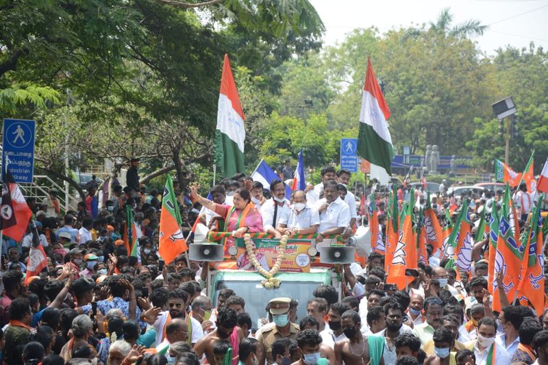 தமிழக சட்டமன்ற தேர்தல் ஏப்ரல் 6ம் தேதி நடைபெற உள்ளதால் தேர்தல் திருவிழா களைக்கட்டியுள்ளது. அரசியல் கட்சி தலைவர்கள் கூட்டணி பேச்சுவார்த்தை, தொகுதி பங்கீடு, தேர்தல் அறிக்கை, வேட்பாளர்கள் அறிவிப்பு ஆகிய பணிகளை எல்லாம் முடித்துக் கொண்டு, தற்போது தேர்தல் களத்தில் வேட்பாளர்களுக்கு தீவிர ஓட்டு வேட்டை நடத்தி வருகின்றனர். அதிமுகவுடனான பாஜக கூட்டணிக்கு 20 தொகுதிகள் ஒதுக்கீடு செய்யப்பட்டுள்ளன.