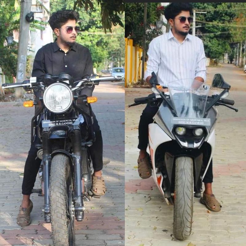 கார் ஓட்டுநராக இருந்த கண்ணன் இப்போது உதவியாளராக உயர்ந்திருப்பதாகவும் கூறப்படுகிறது. இதுகுறித்து விளக்கம் கேட்க எம்.ஆர் காந்தியை தொடர்பு கொண்டோம், ஆனால் அவருடன் பேச முடியவில்லை. இது தொடர்பாக சில ஊடகங்களுக்கு தகவல் விளக்கமளித்துள்ள அந்த இளைஞரின் தந்தை கண்ணன், எனது மகன் அப்படி எல்லாம் இல்லை, அதை யாரோ எடிட் செய்து போட்டிருக்கலாம் எனக் கூறியுள்ளார். அதாவது நம்பர் பிளேட் க்கு பதிலாக இருசக்கர வாகனத்தில் கிராண்ட் சன் ஆஃப் நாகர்கோயில் எம்எல்ஏ காந்தி எழுதிய பைக் சாலையில் ஓட்டுவது விதிகளுக்கு புறம்பானது என்பது குறிப்பிடத்தக்கது. ஒருவேளை அந்த பைக் சாலைக்கு வரும்பட்சத்தில் அது போலீசாருக்கே வெளிச்சம்.