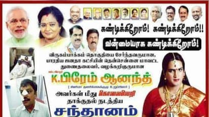 கொஞ்சம் நின்று பார்த்தால்தான், சந்தானம் பெண் வேடத்தில் நடித்த சினிமா ஸ்டில் என்று தெரிகிறது. அதில், பெண் வேட சந்தானம் கொஞ்சம் ரொமான்ஸாகவே ஒரு லுக் விடும் படம், இந்த கண்டன போஸ்டரில் உள்ளது. இந்த போஸ்டர் படத்தை சமூக வலைத்தளங்களில் பார்த்த நெட்டிசன்கள், இதன் மூலம் பாஜக.,வினர் என்ன சொல்ல வருகிறார்கள்? இந்தச் செயலில் ஈடுபட்டவர் ஒரு ஆண் இல்லை...என்று கூறுகிறார்களா அல்லது, பிரேம் ஆனந்த் சந்தானம் என்ற பெண் கையால் அடி வாங்கினார் என்று காட்ட முயலுகிறார்களா என்று கன்ப்யூஸ் ஆகி கேலி செய்து வருகின்றனர்!