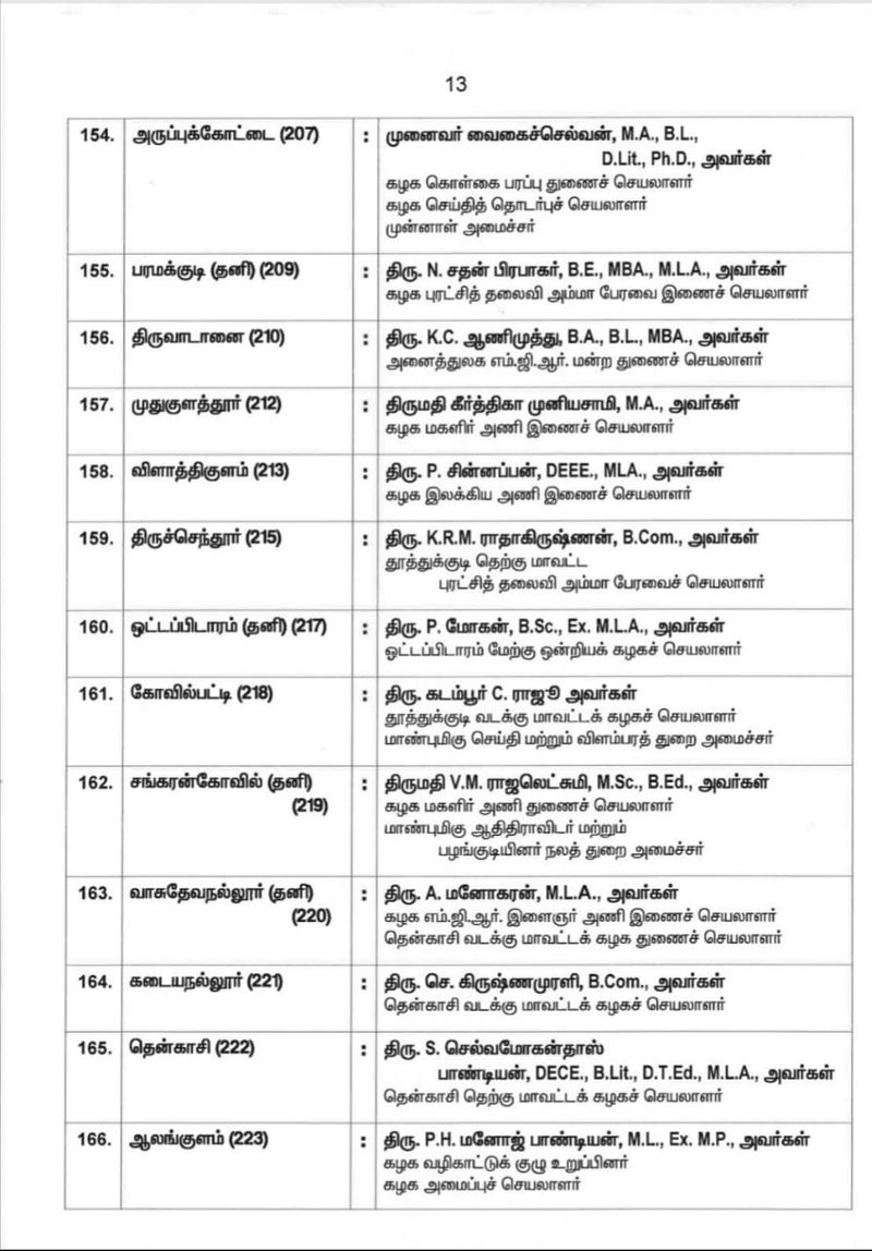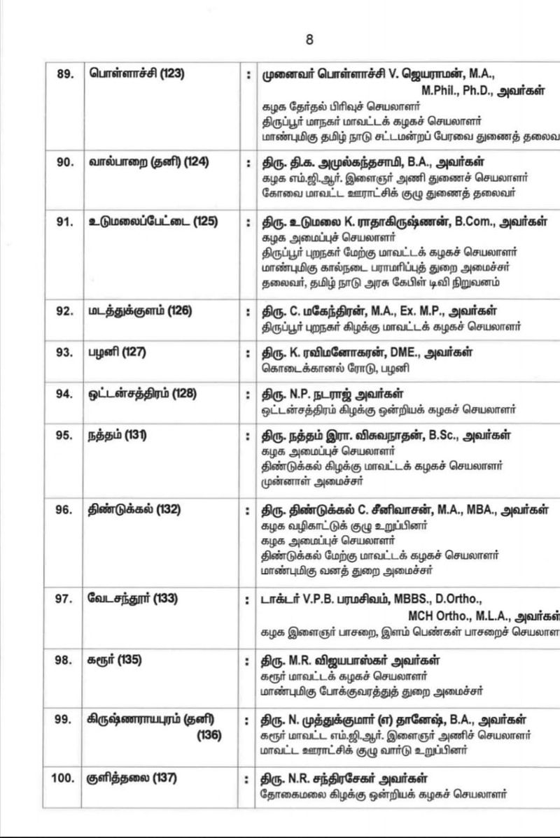 171 தொகுதிகளுக்கான வேட்பாளர் பட்டியலை வெளியிட்டது அதிமுக .இதோ அந்த பட்டியல் விவரம்...