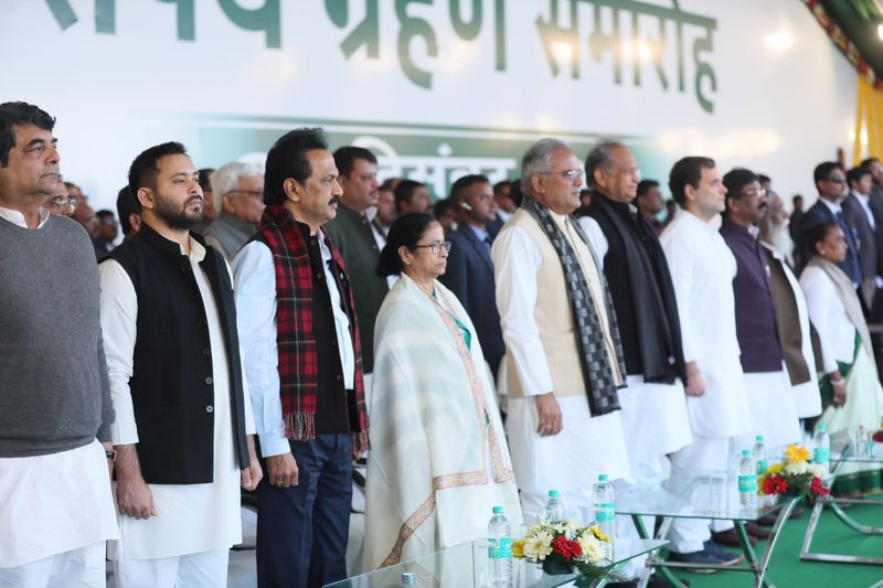 ஜார்கண்டில் நடந்த தேர்தலில் ஜார்க்கண்ட் முக்தி மோர்ச்சா (ஜே.எம்.எம்) வெற்றி பெற்று மாநிலத்தின் முதலமைச்சராக ஹேமந்த் சோரன் நேற்று பதவியேற்றுக் கொண்டார். இந்த பதவி ஏற்பு விழாவில் மம்தா, ராகுல், மு.க.ஸ்டாலின் உள்ளிட்ட பல முக்கிய தலைவர்கள் கலந்து கொண்டனர்.