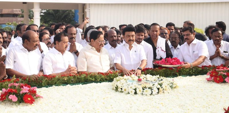 அமைதி பேரணியானது வாலாஜா சாலையில் தொடங்கி காமராஜர் சாலையில் அமைந்துள்ள அண்ணா சதுக்கத்தில் நிறைவடைந்தது. இந்த பேரணியில் தமிழக அமைச்சர்கள், நாடாளுமன்ற உறுப்பினர்கள், சட்டமன்ற உறுப்பினர்கள், திமுக மூத்த நிர்வாகிகள் கலந்து கொண்டு அண்ணா நினைவிடத்தில் அஞ்சலி செலுத்தினர். பேரணியின் நிறைவாக அண்ணா நினைவிடத்தில் முதல்வர் ஸ்டாலின் மலர்வளையம் வைத்து அஞ்சலி செலுத்தினார்.