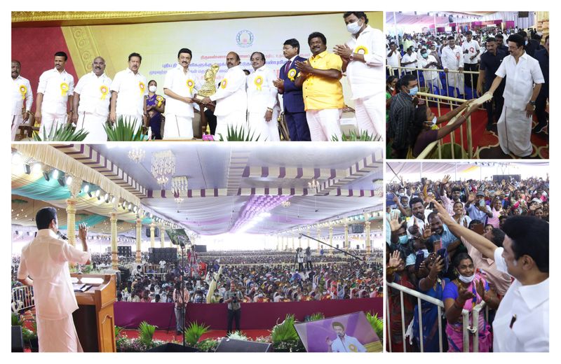 70 கோடியே 27 லட்சம் ரூபாய் மதிப்பிலான 91 முடிவுற்ற பணிகள் திறந்து வைக்கப்பட்டிருக்கிறது. 340 கோடியே 21 லட்சம் ரூபாய் மதிப்பீட்டிலான 246 புதிய பணிகளுக்கும் அடிக்கல் நாட்டப்பட்டிருக்கிறது. இவையெல்லாம் மதத்தை வைத்து அரசியல் செய்கின்றவர்களுக்கு, அவர்கள் கண்களுக்கெல்லாம் இது தெரியாது. ஏனென்றால் அவர்கள் உண்மையான ஆன்மீகவாதிகள் அல்ல, அவர்கள் உண்மையான ஆன்மீக வியாதிகள்; ஆன்மீகப் போலிகள். ஆன்மீகத்தைத் தங்களது அரசியலுக்காக மட்டுமே