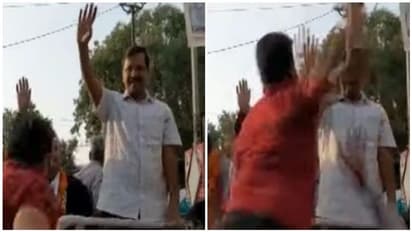 முதமைச்சர் அரவிந்த் கெஜ்ரிவால், டெல்லி மோட்டி நகரில் பிரச்சாரத்தில் ஈடுபட்டிருந்தார். திறந்த வாகனத்தில் நின்றபடி, அவருடைய தொண்டர்கள் புடை சூழ பிரச்சாரம் செய்து கொண்டு வந்த அவரின் வானம் மீது ஏறிய மர்ம நபர் ஒருவர், அவரை கன்னத்தில் அறைந்தார்.