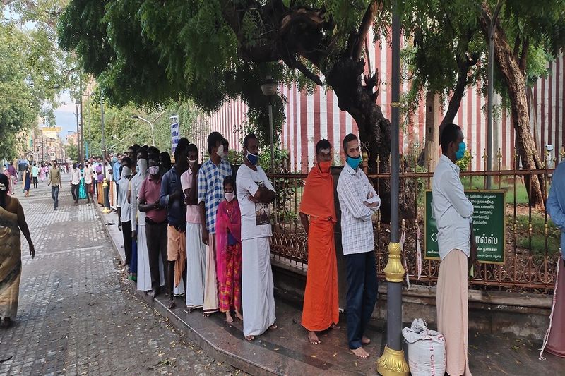 நீண்ட இடைவேளைக்கு பிறகு தரிசனத்திற்கு அனுமதிக்கப்பட்டதால் மதுரை மீனாட்சி அம்மன் கோவிலில் ஆயிரக்கணக்கானோர் குடும்பநீண்ட இடைவேளைக்கு பிறகு தரிசனத்திற்கு அனுமதிக்கப்பட்டதால் மதுரை மீனாட்சி அம்மன் கோவிலில் ஆயிரக்கணக்கானோர் குடும்பம் குடும்பமாக திரண்டனர். பாதுகாப்பு காரணங்களுக்காக லட்டு பிரசாதம் ரத்து செய்யப்பட்டுள்ளது. பொது போக்குவரத்து இன்று தான் துவங்கியது என்பதால் வெளியூர் பக்தர்கள் இன்று வர முடியவில்லை. இருப்பினும் உள்ளூர் பக்தர்கள் ஆயிரக்கணக்கானோர் திரண்டனர். பாதுகாப்பு காரணங்களுக்காக கோவில் அம்மன் சன்னதி கிழக்கு நுழைவு வாயிலில் மட்டுமே பக்தர்களுக்கு அனுமதி வழங்கப்பட்டது.