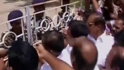 அவர்களுடன் அமைச்சர் காமராஜ், முன்னாள் அமைச்சர் தளவாய் சுந்தரம் உள்ளிட்டோரும் நுழைவாயிலை முற்றுகையிட்ட கட்சத் தொடர்க்ள் தங்களை உள்ளே அனுமதிக்குமாறு அவர்கள் கூச்சலிட்டனர்.