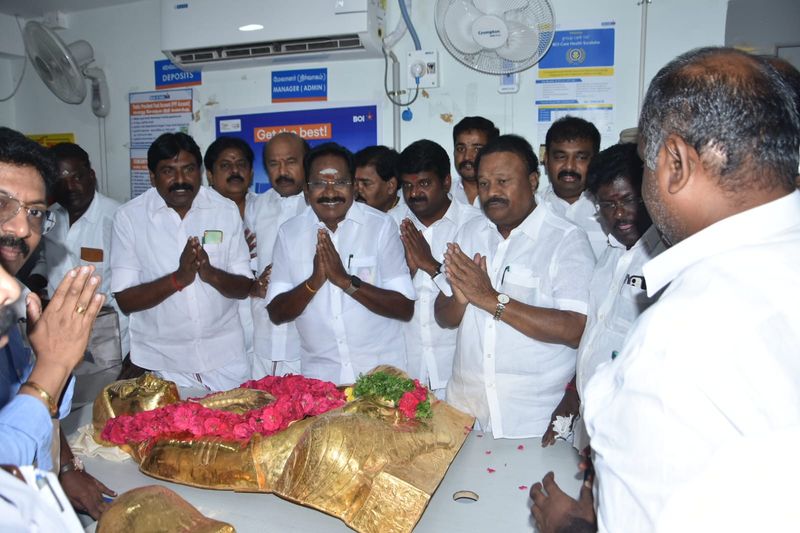 இதனை தொடர்ந்து தேவர் ஜெயந்தி விழா முடிந்ததையொட்டி பசும்பொனில் இருந்து பலத்த பாதுகாப்புடன் தங்க கவசம் மதுரைக்கு கொண்டுவரப்பட்டது. அதனைத் தொடர்ந்து திண்டுக்கல் சீனிவாசன் மற்றும் காந்தி மீனாள் ஆகியோர் கையெழுத்துட்டு வங்கியில் மீண்டும் ஒப்படைத்தனர்.