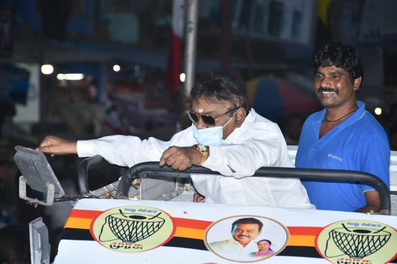 எல்.கே. சுதிஷுக்கு கொரோனா பாதிப்பு ஏற்பட்டுள்ள நிலையில் மருத்துவமனையில் அனுமதிக்கப்பட்டுள்ளார். பிரேலமதாவுக்கும் கொரோனா பரிசோதனை நடத்தப்பட்டுள்ளது. எனவே, தேமுதிக வேட்பாளர்களை அக்கட்சியின் தலைவர்கள் பிரசாரம் செய்வதில் சுணக்கம் ஏற்பட்டுள்ளது. விஜயகாந்த் இறுதிகட்டத்தில் பிரசாரம் செய்வார் என்று பிரேமலதா ஏற்கனவே கூறியிருந்தார். இந்நிலையில் தனக்கு சென்டிமெண்ட் திருவள்ளூர் மாவட்டம் கும்மிடிப்பூண்டியில் இருந்து நேற்று விஜயகாந்த் பிரசாரத்தைத் தொடங்கினார். கும்மிடிப்பூண்டி தேமுதிக வேட்பாளர் டில்லியை ஆதரித்து பஜார் சாலையில் பிரச்சார வேனில் நின்ற படி வாக்கு சேகரித்தார்.