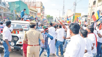 இந்த நிலையில் கிருஷ்ணராயபுரம், புலியூர் உள்ளிட்ட இடங்களில் பிரசாரங்களை மேற்கொண்ட காங்கிரஸ் வேட்பாளர் ஜோதிமணி, நேற்று மாலை கரூர் வெங்கமேடு சேலம் மெயின்ரோட்டில் திறந்த வாகனத்தில் நின்றபடி பிரசாரம் மேற்கொண்டார். அப்போது அவருக்கு ஆதரவாக திருச்சி சிவா எம்.பி., நாஞ்சில் சம்பத், தி.மு.க. மாவட்ட பொறுப்பாளர் செந்தில்பாலாஜி உள்ளிட்டோர் அங்கு பேசி கொண்டிருந்தனர்.