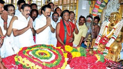இதனை அறிந்து காரில் இருந்து இறங்கிய ஸ்டாலின் அர்ச்சகர்களிடம் நலம் விசாரித்துக் கொண்டிருந்தார். அப்போது அர்ச்சகர்கள் தங்கள் கோரிக்கைகள் குறித்து ஸ்டாலினிடம் எடுத்துரைத்தனர். இதனை கேட்டு ஆவண செய்வதாக கூறிவிட்டு புறப்பட தயாரான போது அர்ச்சகர் ஒருவர் ஸ்டாலினுக்கு பொன்னாடை போர்த்தியதுடன் விபூதியும் வைத்துவிட்டார்.