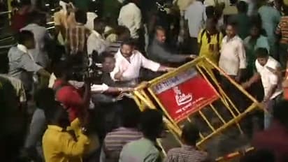 மெரினாவில் இடம் ஒதுக்க வேண்டும் கூறி காவேரி மருத்துவமனை முன் வைக்கப்பட்டிருந்த பேரிகார்டுகளை தொண்டர்கள் அடித்து உதைத்ததால் அப்பகுதியில் பரபரப்பு ஏற்பட்டுள்ளது. இதனையடுத்து திமுக நீதிமன்றத்தை நாடா உள்ளதாகவும் தகவல் வெளியாகியுள்ளது.