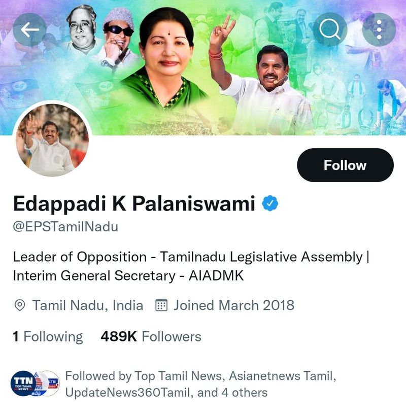 அதிமுகவின் இடைக்கால பொதுச்செயலாளராக எடப்பாடி பழனிசாமி தேர்வு செய்யப்பட்டு தீர்மானம் நிறைவேற்றப்பட்டுள்ள நிலையில் தனது டிவிட்டர் பக்கத்தில் பதவியை இடைக்கால பொதுச்செயலாளர் என்று எடப்பாடி பழனிசாமி மாற்றியுள்ளார். அதிமுக ஒற்றத் தலைமை விவகாரம் பெரும் பிரச்சனையாக மாறியது. இதை அடுத்து ஓ.பன்னீர்செல்வம் மற்றும் எடப்பாடி பழனிசாமி ஆயோர் இடையே அதிகார மோதல் ஏற்பட்டது. இதனிடையே ஜூலை 11 (இன்று) அதிமுக பொதுக்குழு கூட்டம் நடத்தப்படும் என அறிவிக்கப்பட்டது. பொதுக்குழுவை கூட்டி ஒற்றை தலைமை தீர்மானத்தை கொண்டு வந்து பொது செயலாளர் பதவியை கைப்பற்றி விடலாம் என்ற எண்ணத்தில் எடப்பாடி அணியினர் எண்ணினர். அதேநேரத்தில் ஒருங்கிணைப்பாளர் இல்லாமல் நடத்தப்படும் பொதுக்குழு சட்டப்படி செல்லாது. அதில் நிறைவேற்றப்படும் எந்த தீர்மானமும் செல்லாது. பொதுக்குழுவுக்கு தடை விதிக்க வேண்டும் என்று ஓபிஎஸ் தரப்பில் நீதிமன்றத்தில் வழக்கு தொடரப்பட்டுள்ளது.