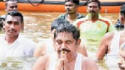 காவிரிக்கு பூஜை செய்து மலர் தூவி வழிபட்டார். பின்னர், துலாக்கட்ட காவிரியின் மைய பகுதியில் அமைக்கப்பட்டுள்ள புஷ்கரணிக்குச் சென்று புனித நீராடினார்.
