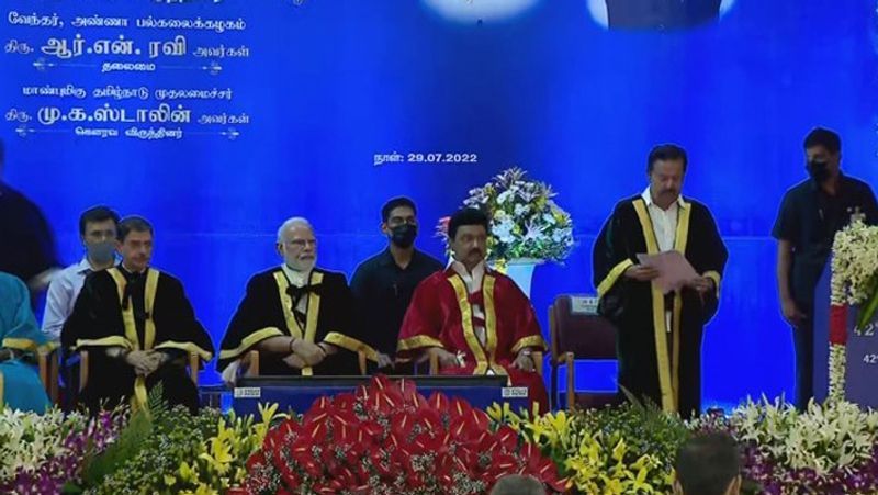 பிரதமர் மோடி சிறப்பு விருந்தினராக கலந்து கொண்டுள்ள அண்ணா பல்கலைக்கழக 42வது பட்டமளிப்பு விழாவில் முதல்வர் ஸ்டாலின் பேசுகையில்;- செஸ் ஓலிம்பியாட் நேற்று தொடக்கி வைத்த பிரதமருக்கு முதலமைச்சர் ஸ்டாலின் மீண்டும் ஒரு முறை நன்றி. பட்டங்கள் என்பவை வேலைவாய்ப்புக்காக மட்டுமல்ல. அறிவினை பெருக்குவதற்கும் தான். பட்டமளிப்பு விழாவில் பிரதமர் பங்கேற்றுள்ளது இன்று பட்டம் பெறும் மாணவர்களுக்கு கிடைத்த பெருமை.