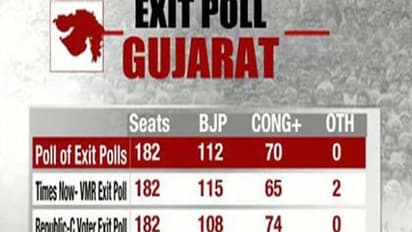 தற்போதைய நிலவரப்படி குஜராத் மாநிலத்தில் பா.ஜ.க. 115 இடங்களில் வெற்றி பெற்று ஆட்சியை தக்க வைக்க வாய்ப்பு உள்ளதாகவும், காங்கிரஸ் கட்சி 65 தொகுதிகளில் வெற்றி பெறும் என்றும் டைம்ஸ் நவ்-விஎம்ஆர் கருத்துக்கணிப்பு முடிவுகள் தெரிவிக்கின்றன.
