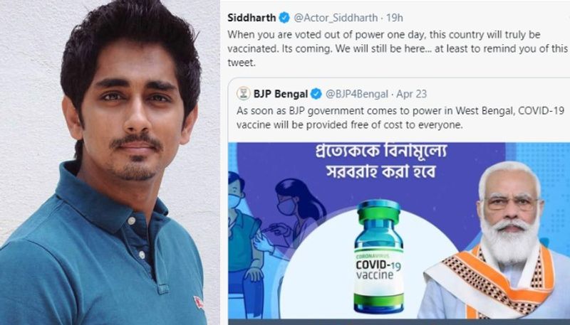 தமிழ்,இந்தி, தெலுங்கு திரைப்படங்களில் நடித்து வரும் நடிகர் சித்தார்த் சமூக ரீதியாகவும் தொடர்ந்து செயல்பட்டு வருகிறார். கடலூர் வெள்ளத்தின்போது, அங்குச் சென்று மக்களுக்கு முதலில் உதவியவர் நடிகர் சித்தார்த். மேலும் இவர் மத்திய அரசைத் தொடர்ந்து விமர்சித்து ட்வீட் செய்து வருகிறார். சமீபத்தில் ஆக்சிஜன் தட்டுப்பாடு தொடர்பாக உத்தரப்பிரதேச முதல்வர் யோகி ஆதித்யநாத் தெரிவித்த கருத்தை விமர்சித்து சித்தார் ட்வீட் செய்தார்.